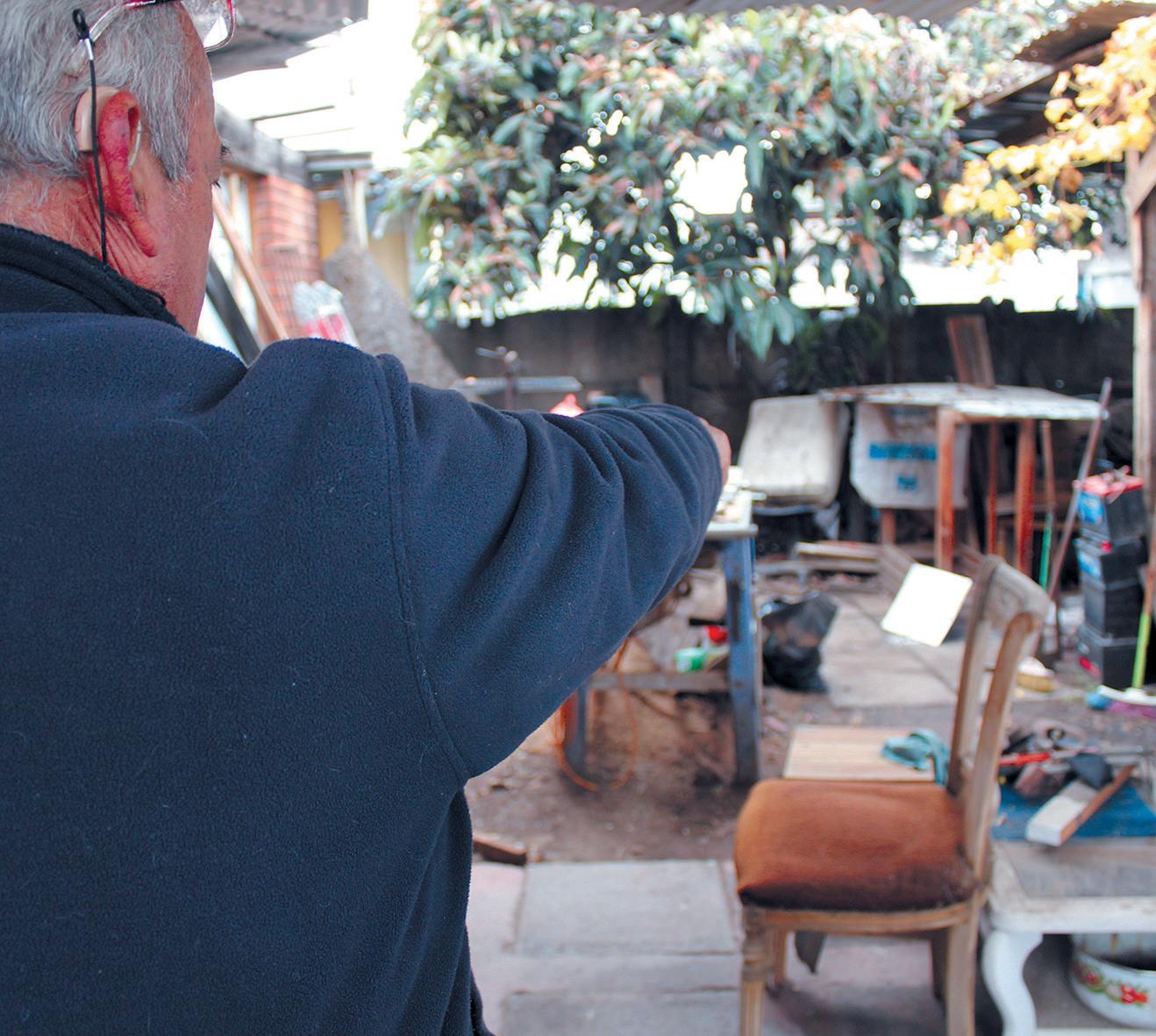 Y, por otra parte, han entrado a robar cinco veces por la cantidad de maquinaria que ocupa para los muebles de madera nativa que realiza cuando no está trabajando.