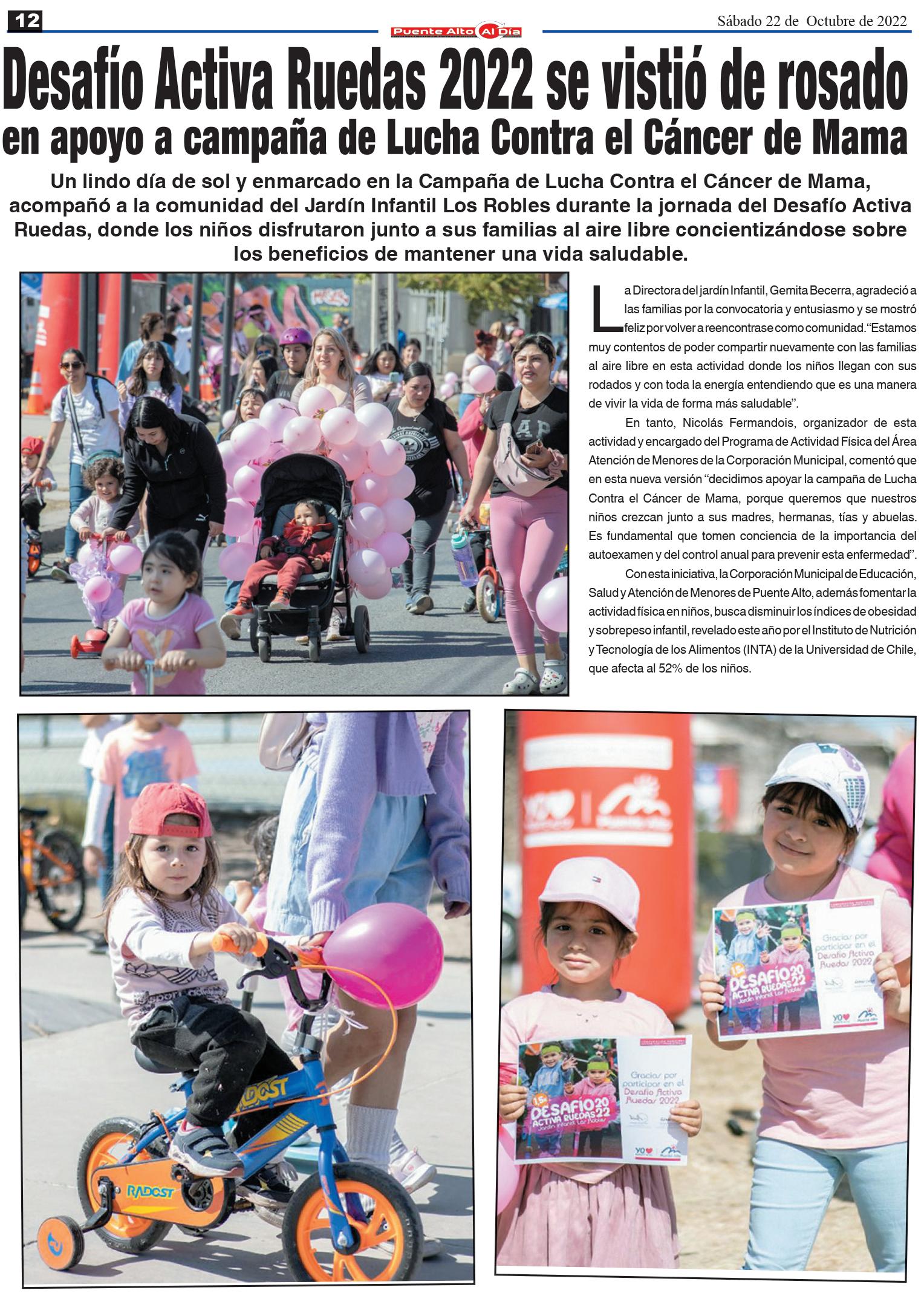 es el mes dedicado a crear conciencia sobre el cáncer de mamas en Chile, la primera causa de muerte por cáncer en mujeres en el país, y que, detectado a tiempo, tiene cura y buen pronóstico de sobre vida en quienes lo padecen.