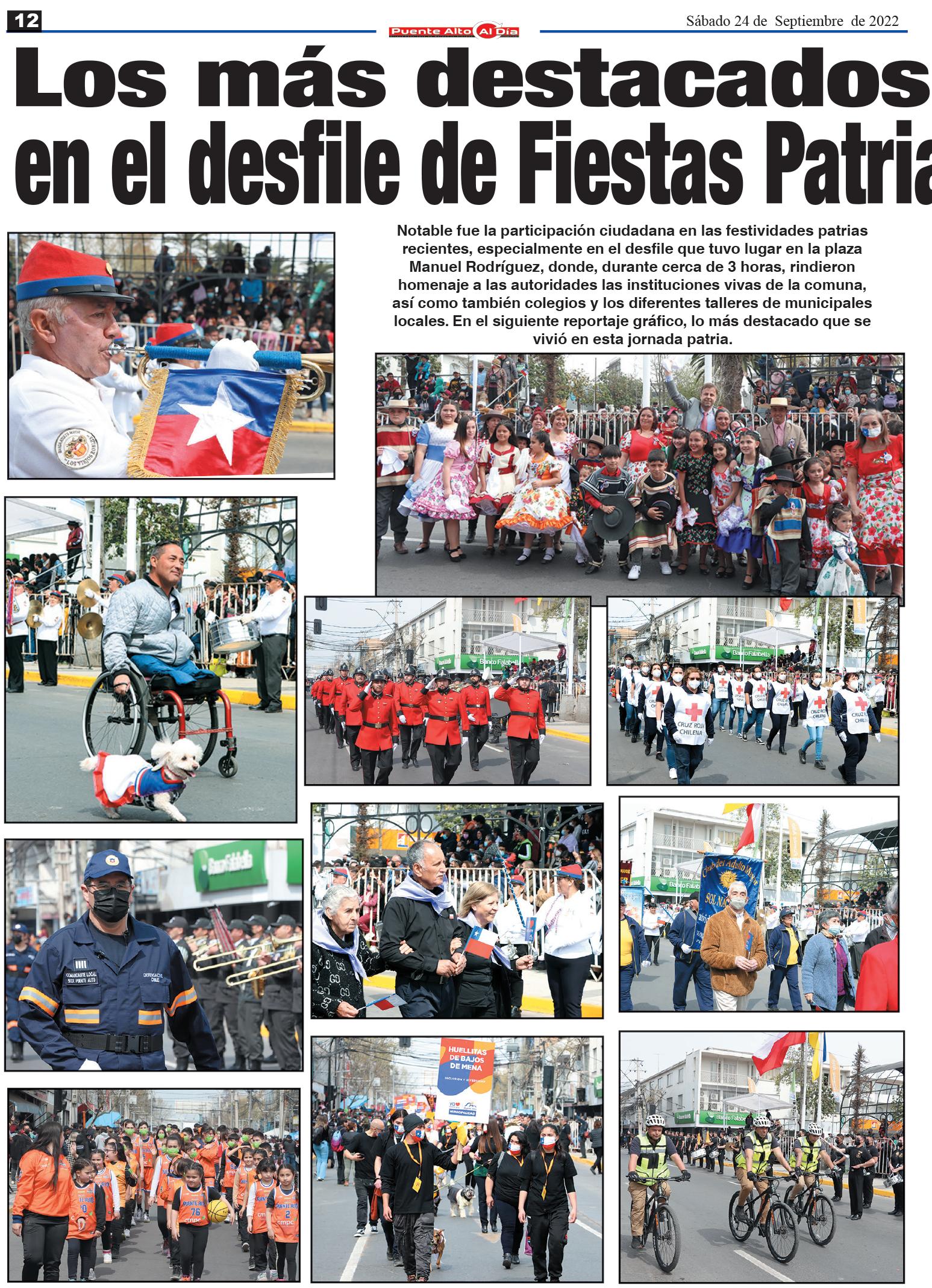 Sábado 24 de Septiembre de 2022 RECONOCIMIENTO 5 FUNDADO EL 14 DE SEPTIEMBRE DEL 1962 EMPRESA PERIODISTICA PUENTE ALTO AL DIA JUAN ROJAS MALDONADO ¨PUEDE EL QUE CREE QUE PUEDE¨MIEMBRO DE LA ASOCIACIÓN NACIONAL DE PRENSA DIRECTOR Y REPRESENTANTE LEGAL: DOMICILIO: VÍCTOR HUGO ROJAS LÓPEZ EDUARDO CORDERO 0202 E-mail: pald@123.cl FONO: 22 850 0666www.puentealtoaldia.com - twitter: @puentealto_pald prensa@puentealtoaldia.cl Y LOS PLATOS ROTOS LOS PAGUÉ YO SERVICIOS SIN BOLETA Los conceptos vertidos en esta sección son de exclusiva responsabilidad de quien los emite y no representan, necesariamente, el pensamiento de PALD. En nuestro aniversario nos enaltecieron con su presencia, importantes personalidades, especialmente de la comuna y de la ANP. NO DIERON EL EJEMPLO DURANTE LAS FIESTAS PATRIAS
