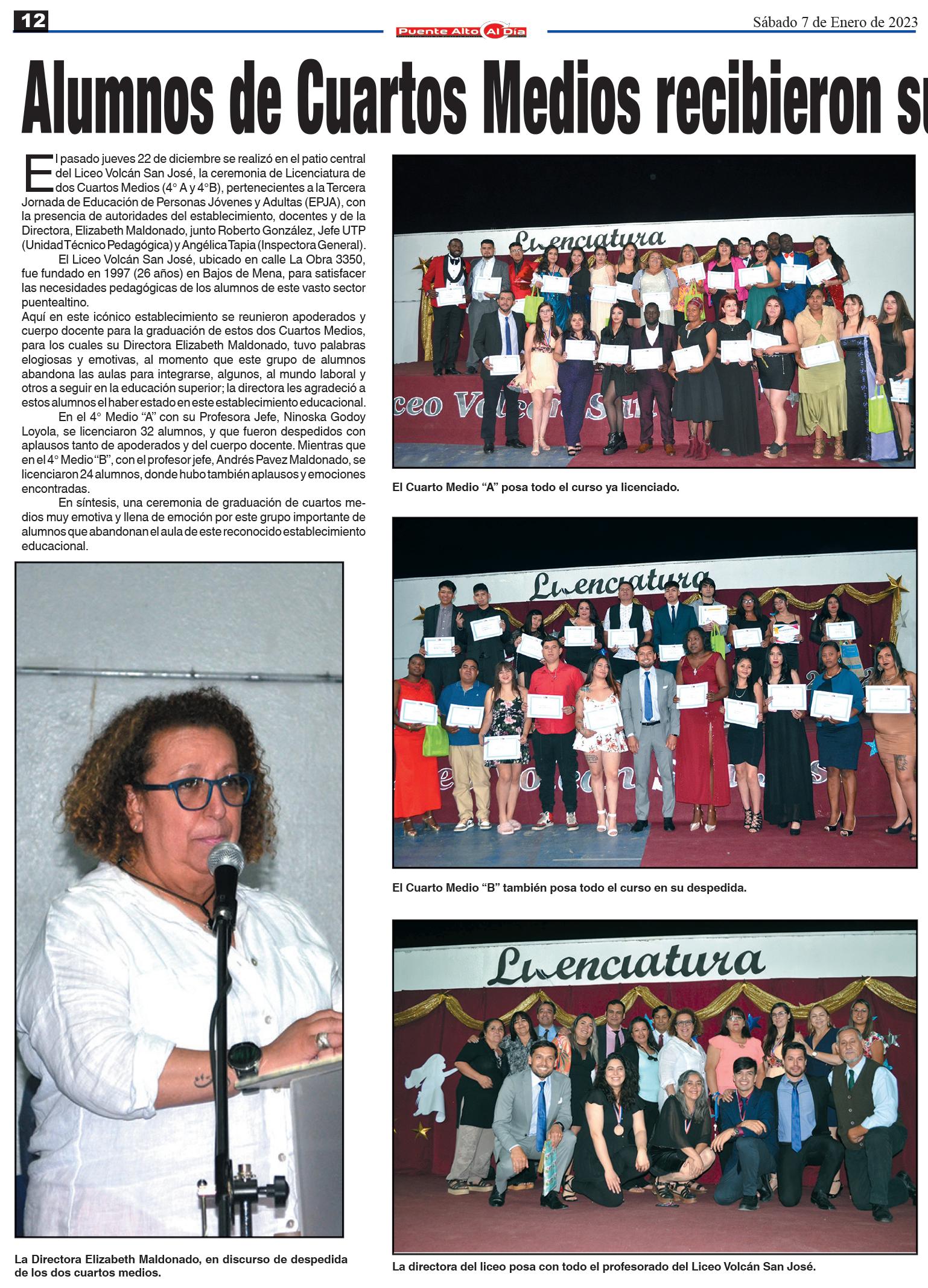 una ceremonia llena de cariño, fe y amistad muy familiar. Por intermedio de este periódico saludamos a todos los puentealtinos, deseándoles un feliz y próspero año 2023. A los trabajadores y familiares de “Puente Alto Al Día” feliz año 2023.