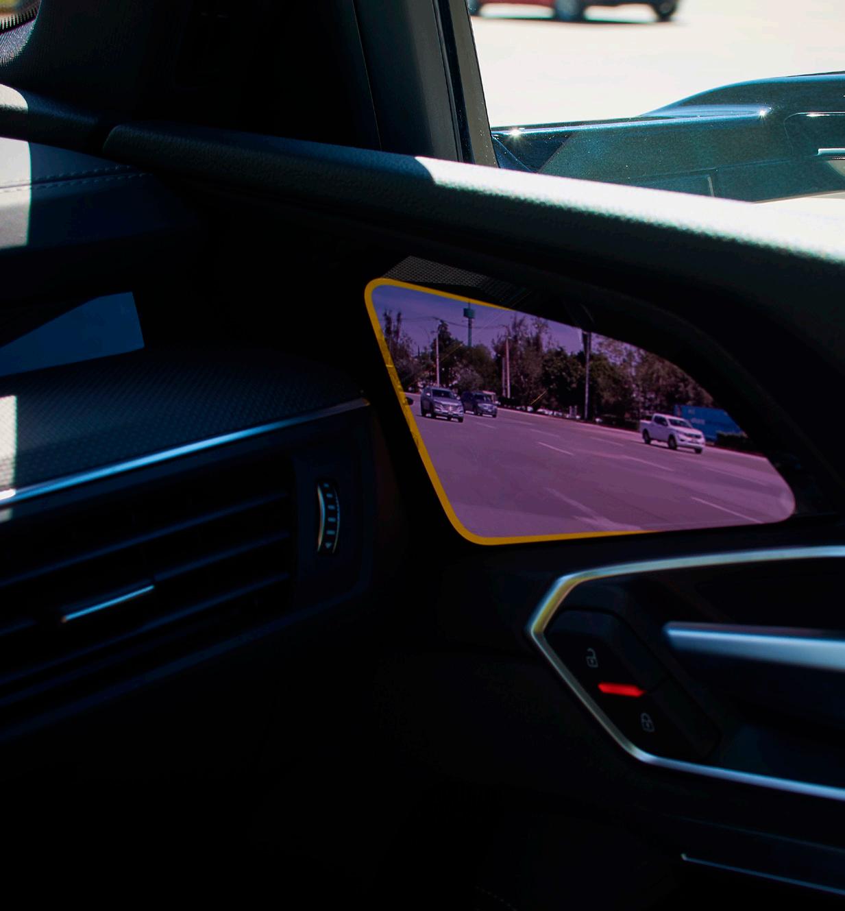 Sin embargo, en el vehículo que tuvimos a prueba, se suman dos pantallas adicionales, ubicadas en la parte superior de los paneles de las puertas, tanto del conductor como del copiloto, las cuales muestran la imagen que recogen las cámaras ubicadas en el exterior y a la altura de los convencionales espejos retrovisores, justamente para cumplir con esta misión, un equipamiento que el cliente puede elegir de manera opcional.