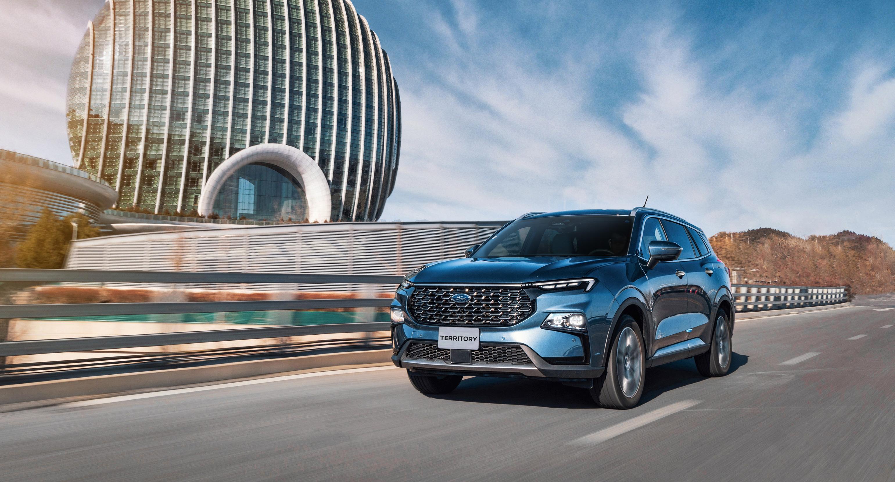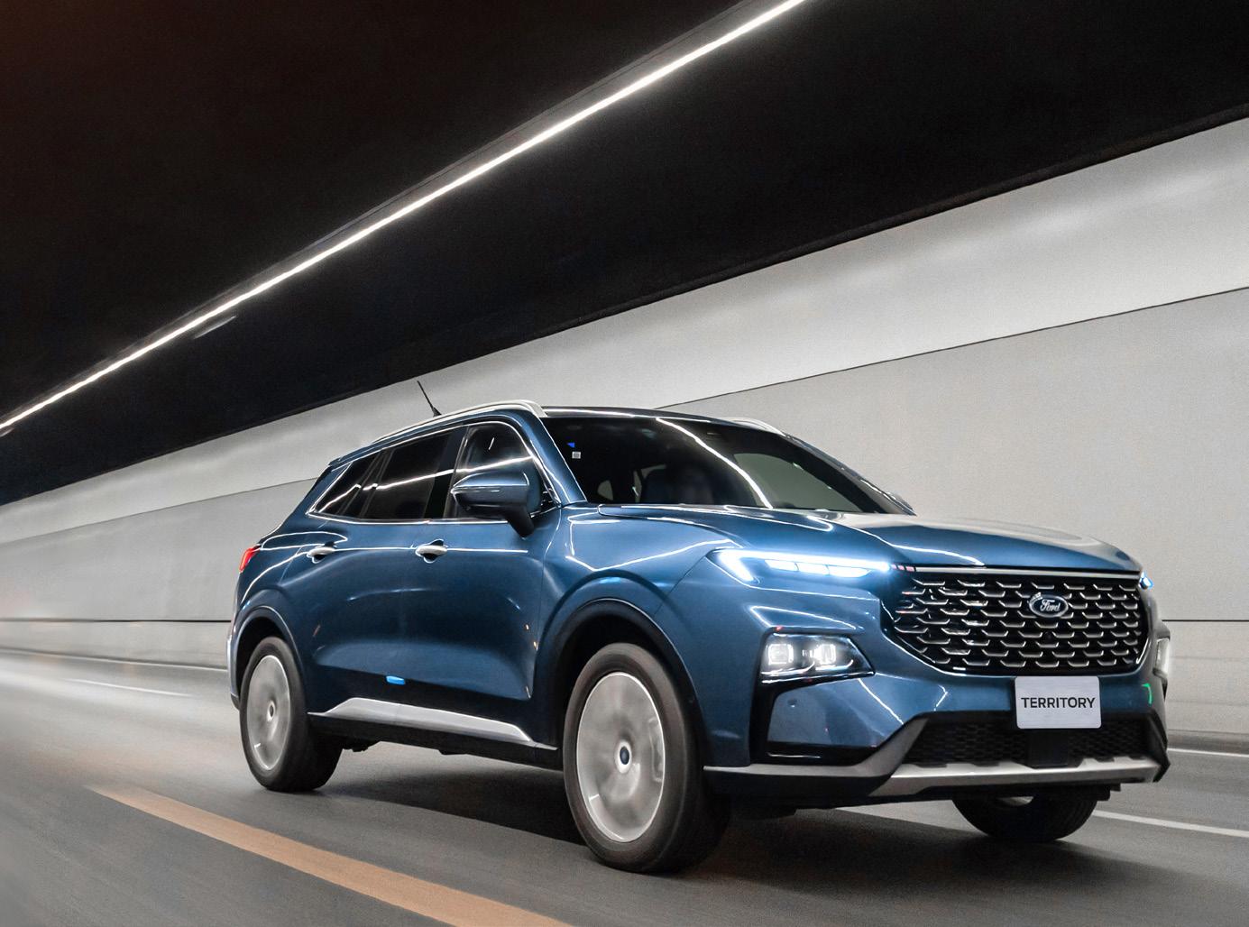 Proveniente de China, fruto de la colaboración de Ford con JMC, la Territory está montada sobre una plataforma proveniente de sus socios asiáticos. Su carrocería mide 4.62 metros de largo y tiene capacidad para cinco pasajeros.