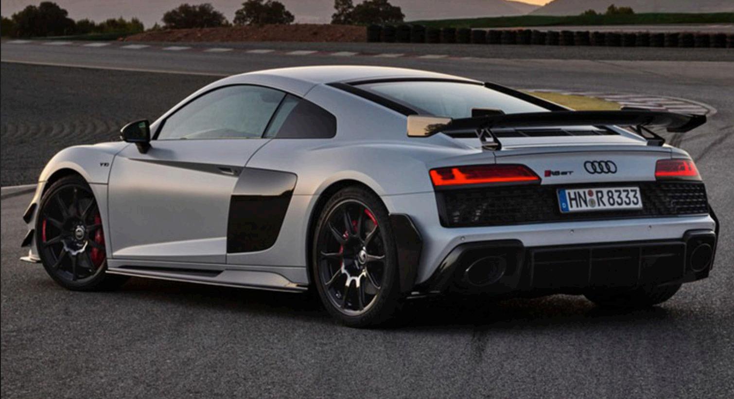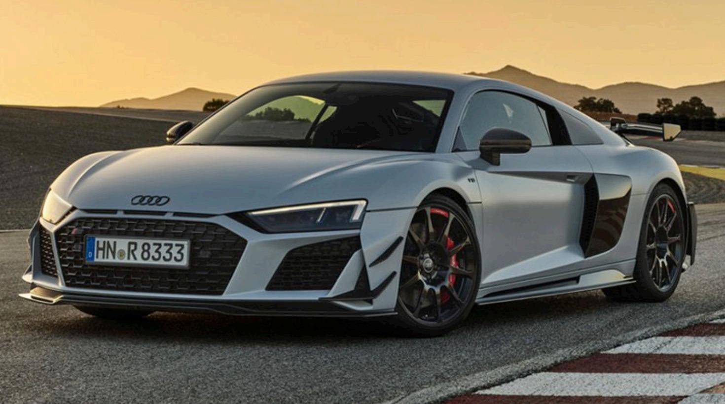 próximo año, por lo que Audi lo despide con un modelo llamado R8 GT, el segundo de su tipo, pues el primero equipa ba tracción total, ahora se presenta con tracción trasera, 602 caballos de fuerza y 413 libras-pie de torque provenientes de ese motor de 10 cilind ros y 5.2 litros, así como una producción limitada a solo 333 unidades para todo el mundo.