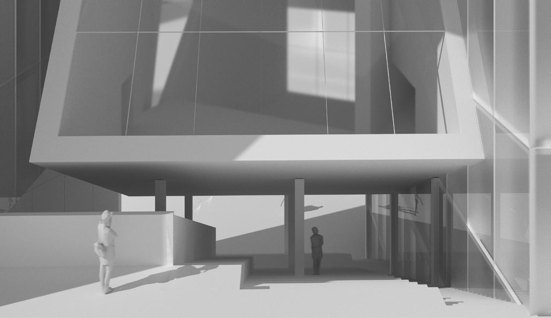 The void space and solid space were defined by using the Boolean of two cuboids. The void space is connected to the outside world and runs through the entire building, while the solid space serves as the main program,such as theater, commercial spaces, and more.