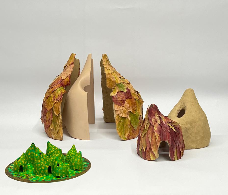 After studying materials, I turned to space. I chose three plant-based materials: leaves, coconut fiber, and straw. Leaves are small and fragile, Coconut fiber is surface and string, Straw is a tube, light and hollow. Each material rearranged as wall, as room, as form. Plants became architecture.