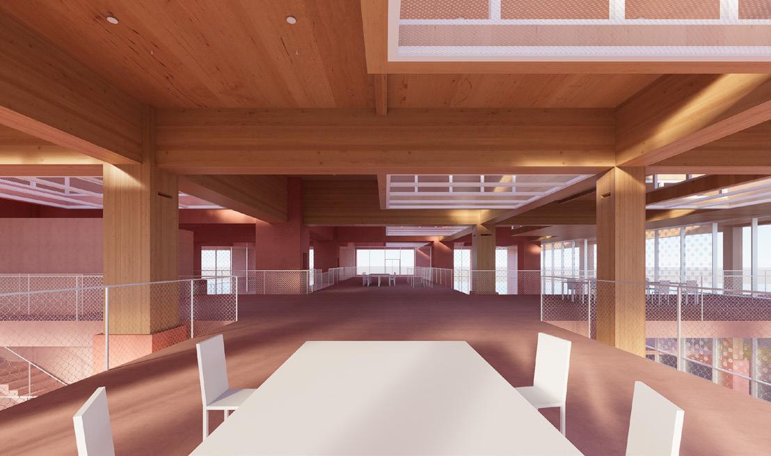 The design introduces a typology where columns evolve from load-bearing supports to hollow cores housing MEP systems, and finally to occupiable spaces for unique programming.