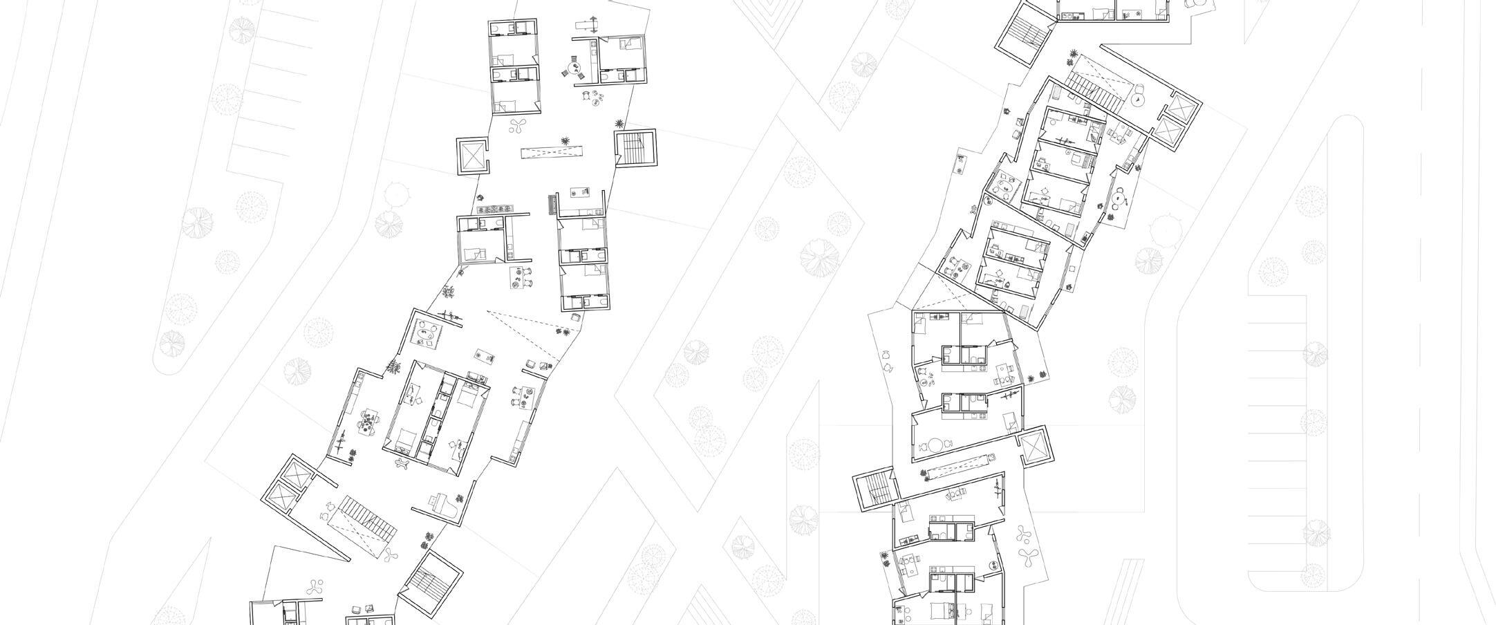 This project aims to reimagine the lifestyle of contemporary urban residents by redefining the boundary between public and private living spaces. The housing scheme is composed of two types of apartment units: Public Units and Private Units.