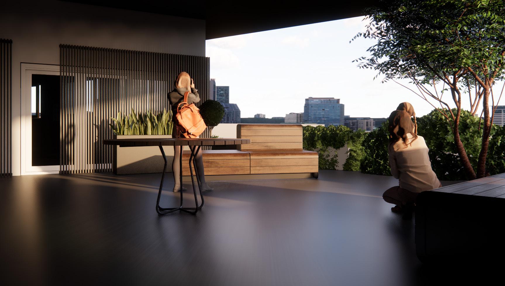 The third floor encompasses a collection of single and two-bedroom apartments, designed with a primary focus on providing exceptional residential living spaces. In addition to serving as dedicated living quarters, this floor also functions as a transitional level, offering access to nature on the upper floors. By providing an opportunity for residents to step out onto this floor, a seamless connection is established with the surrounding natural environment.