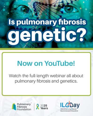 As we celebrate 25 years of progress , we also look ahead. More than 250,000 Americans are currently living with PF and ILD — and far too many are still unaware of the support and resources available to them. Closing that gap is at the heart of our work. We invite you to continue this journey with us: spread the word, connect others to our community, and help ensure that no one faces PF alone.