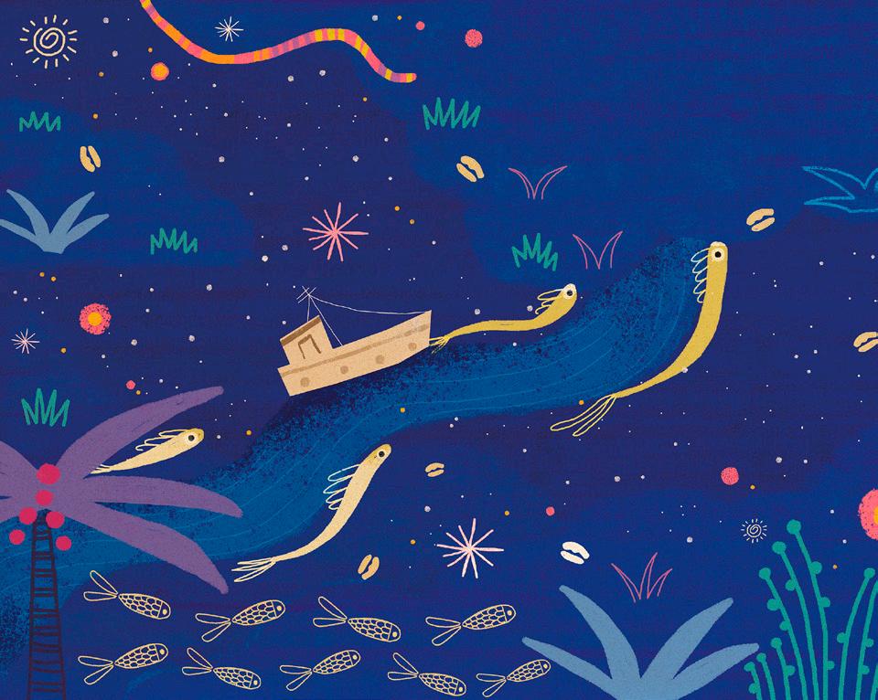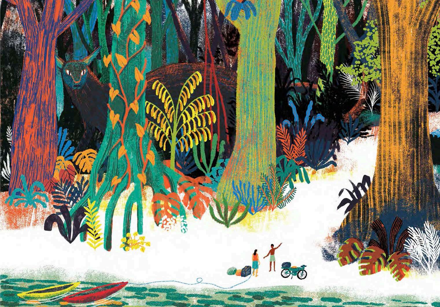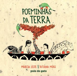 O PULO DO GATO Os versos curtos, sonoros, o ritmo cadenciado pela repetição de vogais e o uso de rimas simples convidam à exploração da linguagem durante a leitura oral. A predominância de palavras de origem tupi-guarani, associada às poéticas ilustrações em nanquim e aquarela, evoca uma profunda harmonia entre os seres e a natureza, fazendo com que Poeminhas da terra proporcione a aproximação do leitor com a cultura dos povos indígenas.