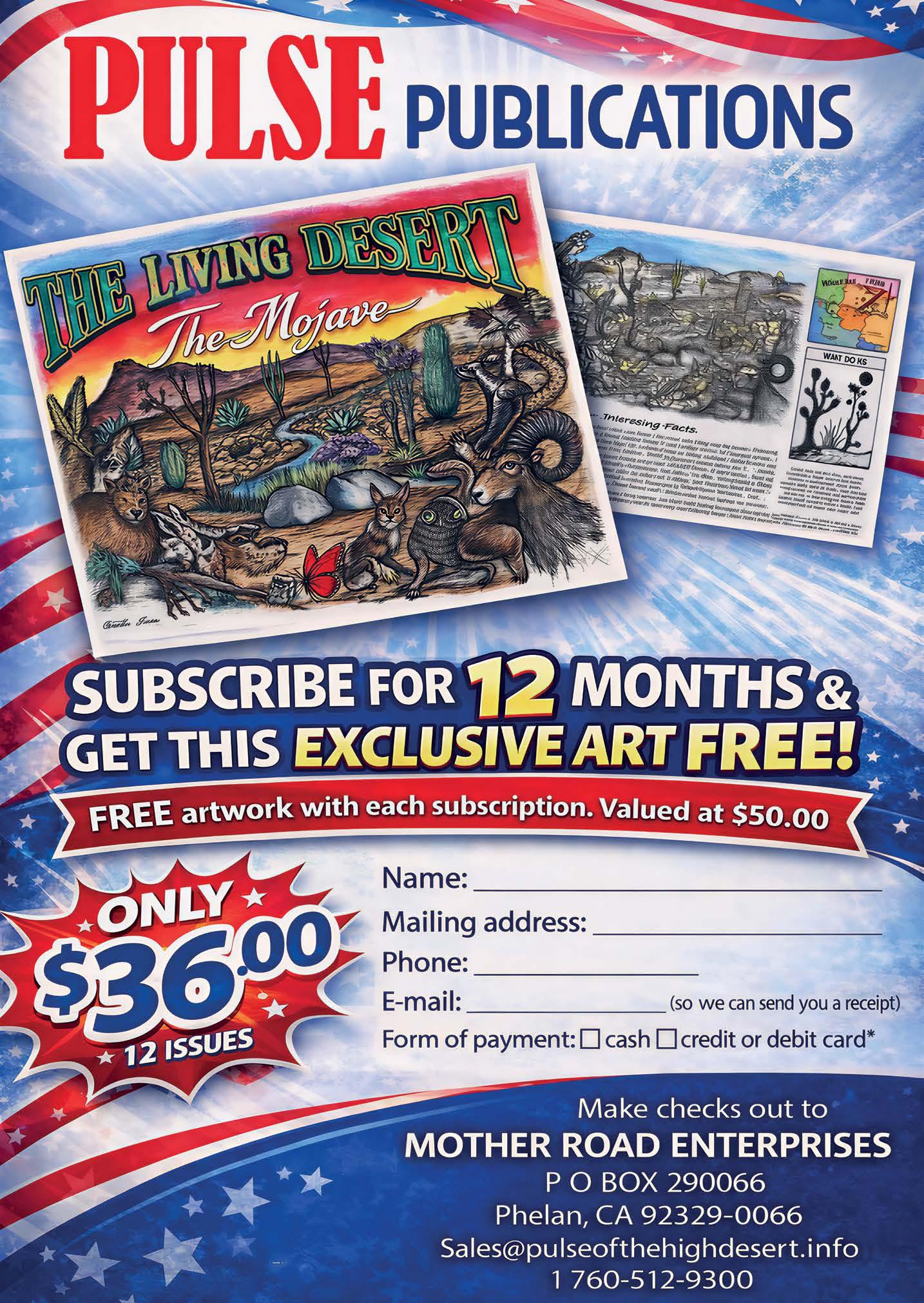 We want to extend our heartfelt thanks to all our readers, supporters, subscribers, and advertisers for allowing us to continue publishing The PULSE of the High Desert. Each of you plays an important role in keeping this publication alive and thriving.