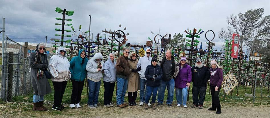 DESPITE FEB. 19, 2026 , being a rather cool and windy day with a chance of rain, the group that came down from the far northern edge of San Bernardino County enjoyed their visit to the old Route 66 Towns of Helendale and Oro Grande. Five Mohahve Historical Society members, Delvin, Mike, Giulio, Martha, and Marcy, met the group of eleven Searles Valley Historical Society members, that hailed from Trona and Ridgecrest, and their fearless leader, Norma, all the way from the small snowy, icy very small town of Onyx, on the other side of the 5250-foot Walker Pass.