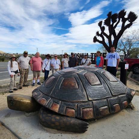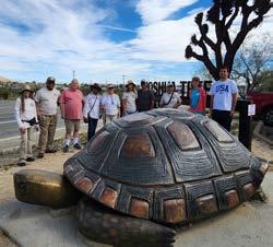 in front of the Victor Valley Museum. The desert tortoise, the symbol of Joshua tree, played such an important role in desert history, that the Woman's Club of Apple Valley was inspired to create our own huge concrete desert tortoise. And who would have guessed that member Kelly DeLand used to enter eight to ten of his own turtles in the annual turtle race that followed the yearly parade? (Is this the same guy that told us, when we were at Giant Rock last year, that he used to attend UFO conventions down there? Hmmmm.)