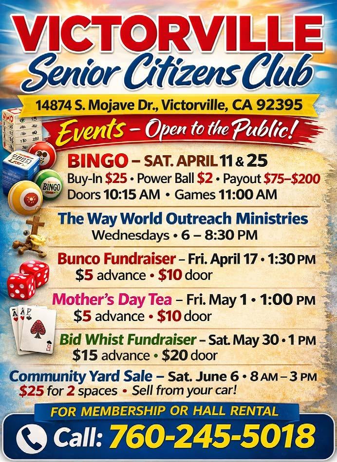 • April 13- 6:00 pm- NAACP Victorville Branch 1082 General Membership meeting- Victorville Office