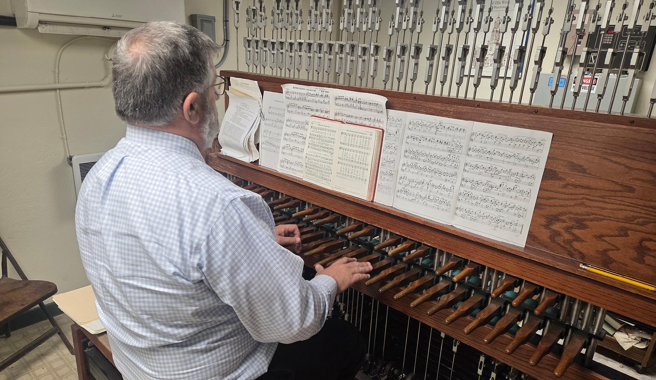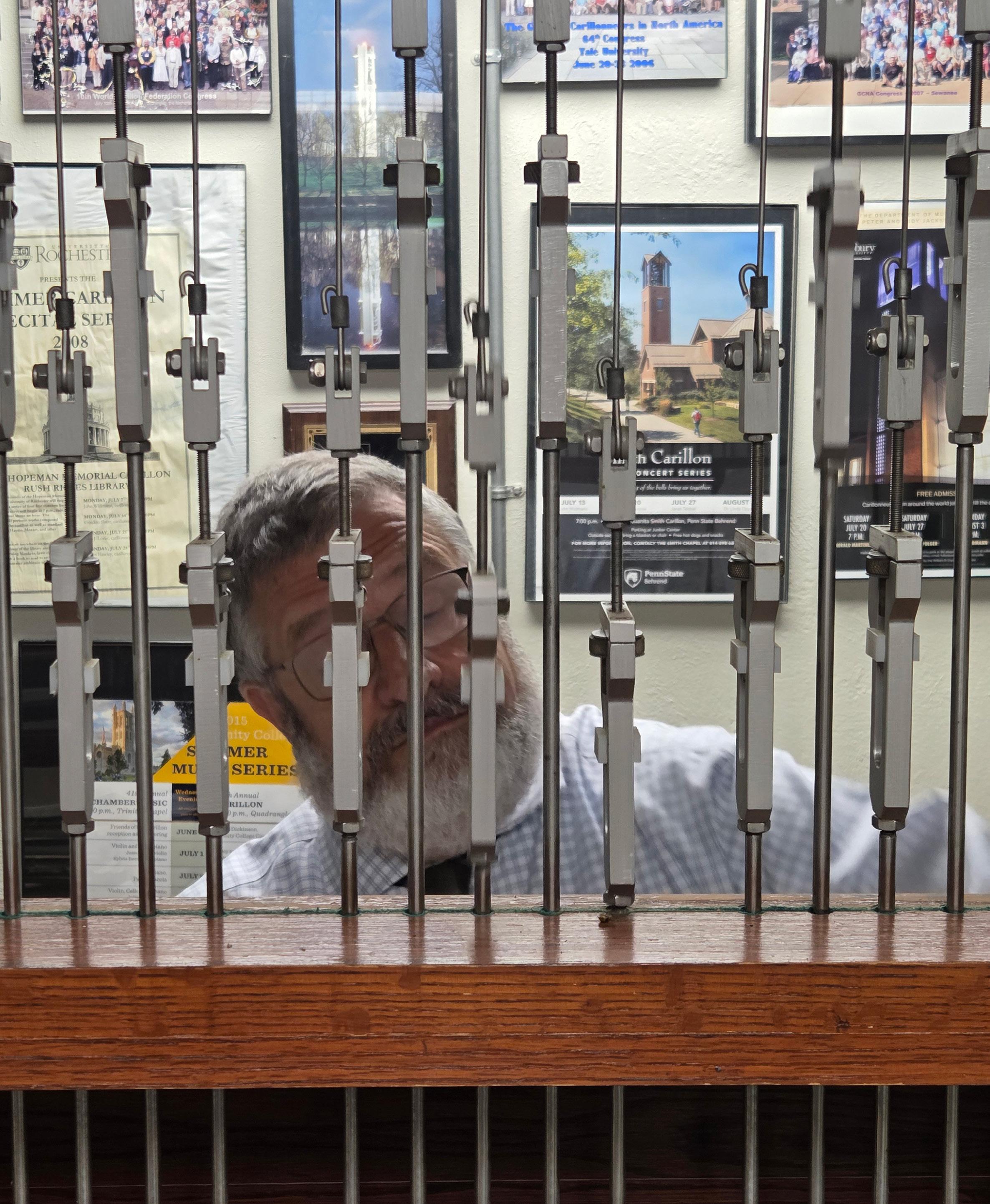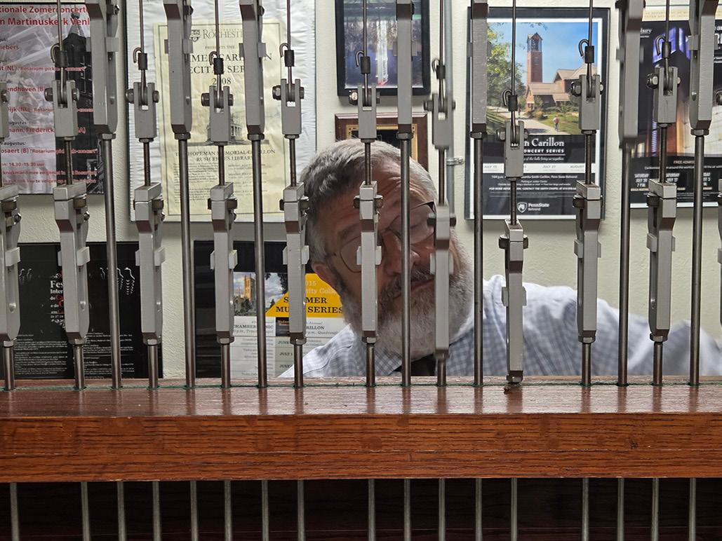 He received carillon training at Mercersburg Academy and the Washington Cathedral. But certification as a carillonneur requires more than musical training. In 1996, Widmann passed the rigorous carillon playing test. "You play anonymously in front of the national convention and are voted on," he explains.