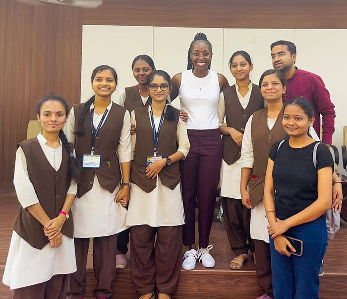 at Bharatiya Mahavidyalaya Amravati, an educational institution in India, sharing financial independence strategies and life skills development to empower students, in an example of her international reach.