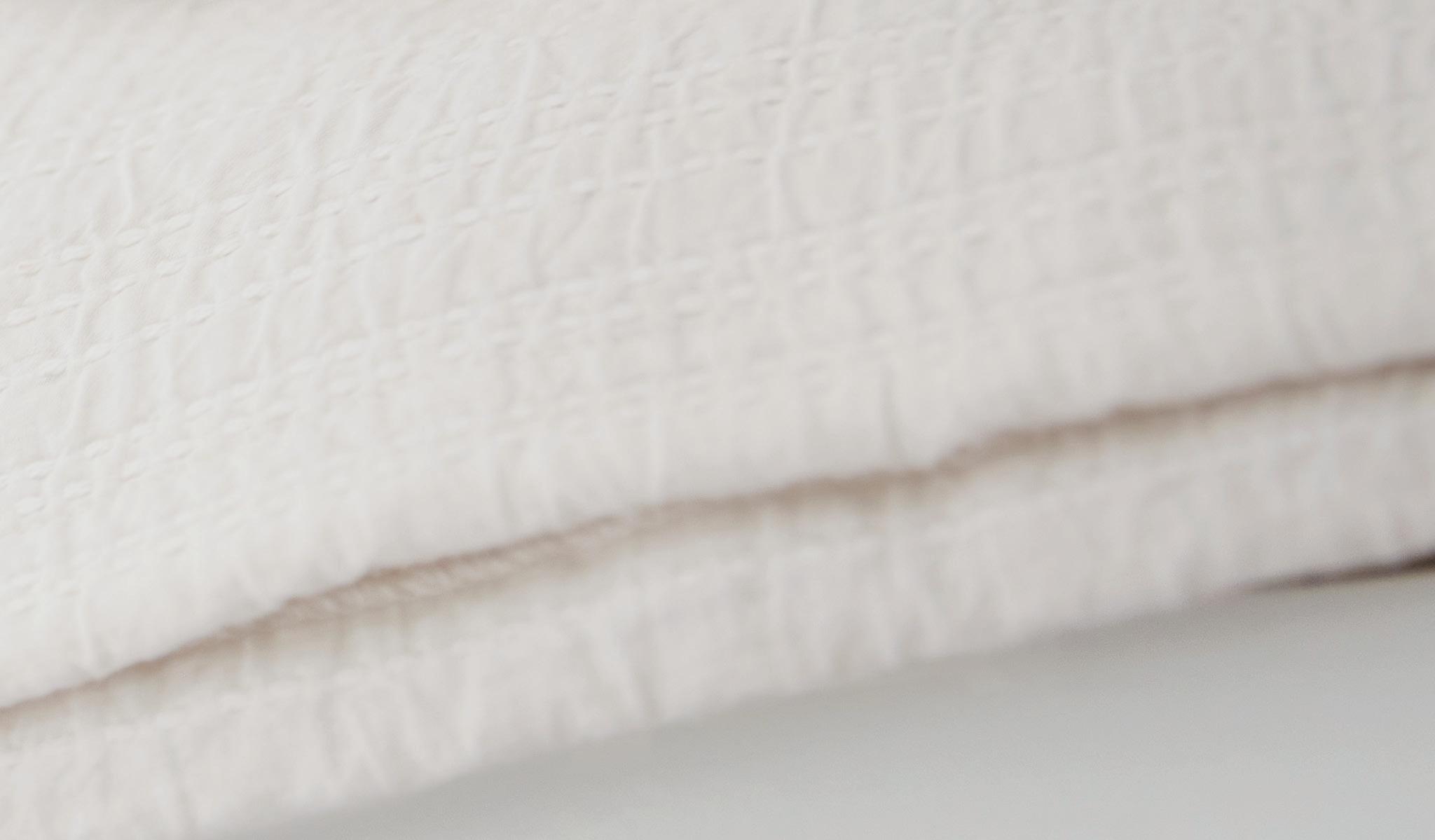 Lençóis e fronhas Soft Touch em branco p. 19 | Colcha de algodão Everyday em Aveia p. 29