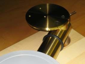 Remove the brass pillar and find underneath two threaded holes. Find the circular brass armbase (optional) with appropriate cutout. Using Allen key ( 3 mm) and two screws fit this onto the pillar. Insert back into T base and, with tonearm protractor, position the brass plate correctly by rotating the brass pillar while releasing the VTA screw with Allen key (3mm). See Fig. 7. Follow tonearm mounting instructions. It is possible that in some circumstances the lid provided may not fit .