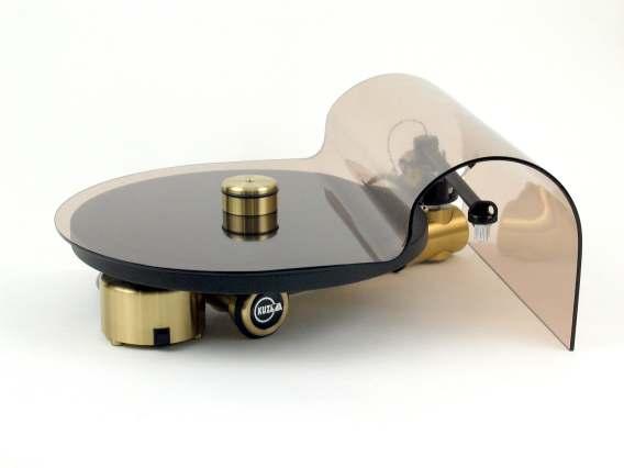 The basic approach to the turntable design was the same as that of all our products. Its unique shape and construction from solid brass rods, provide an extreme rigid connection of platter, bearing and tonearm support. The motor is housed independently in its own tower which dampens motor vibration. The bearing is of highly polished, fine grain carbon steel with a one point contact, while the bearing sleeve is of a resin/textile material which has excellent damping, non-resonant and high sliding properties. With the mat on top and rubber insert underneath, the platter provides a stable non - resonant platform for records, which can also be clamped.