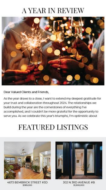 • Christie’s client communications opportunities, such as monthly real estate newsletter, inclusion in Christie’s global client newsletter and Chinese language client newsletter, and dedicated property emails to targeted Christie’s clients