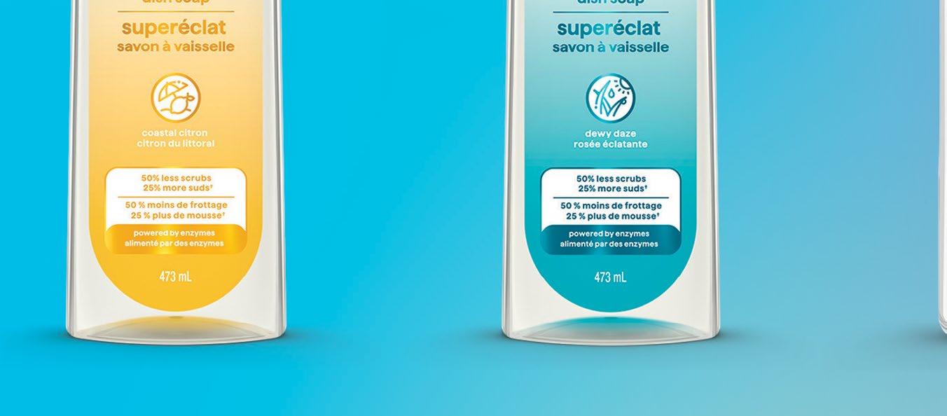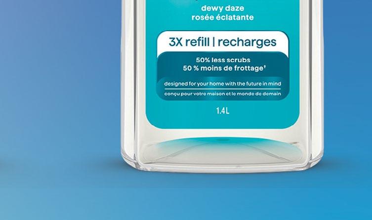 Même mousse abondante et sensation de propreté ! Avec 86 % de plastique en moins par bouteille de 946 ml