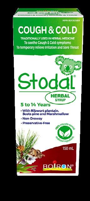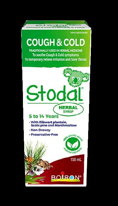 Le Sirop Stodal® à base de plantes : Traditionnellement utilisé en phytothérapie pour soulager les symptômes du rhume et de la toux. Il est formulé avec des extraits naturels de plantes (plantain lancéolé, pin sylvestre, guimauve) qui apaisent les voies respiratoires supérieures (nez, gorge, pharynx).