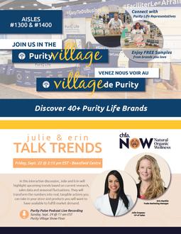 Purity Life hosts retailers and vendors in the Purity Life Village at the CHFA Now shows featuring innovative new brands and line extension with our existing brands available to retailers to help grow their business.