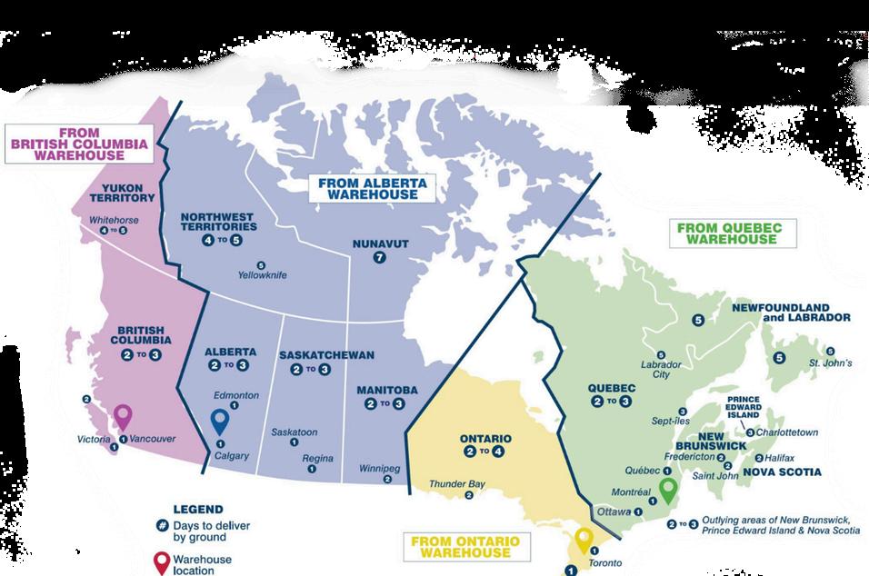4 warehouses strategically located across Canada