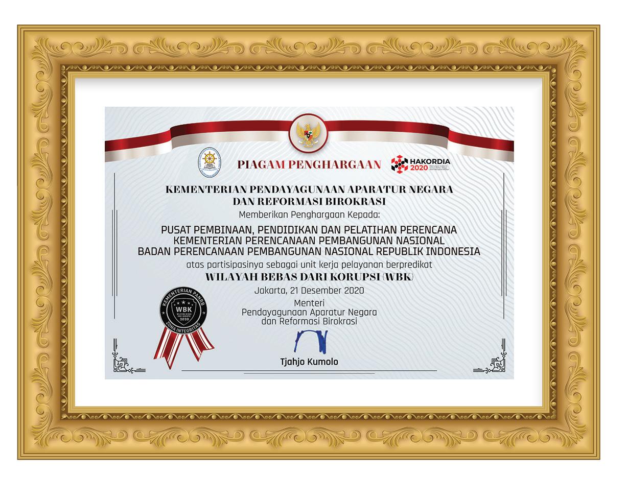 Pada tahun 2020, Pusbindiklatren meraih predikat WILAYAH BEBAS DARI KORUPSI (WBK) dari Kementerian Pendayagunaan Aparatur Negara dan Reformasi Birokrasi (PANRB). Saat ini, Pusbindiklatren terus mengupayakan pelayanan terbaik menuju WILAYAH BIROKRASI BERSIH DAN MELAYANI (WBBM).