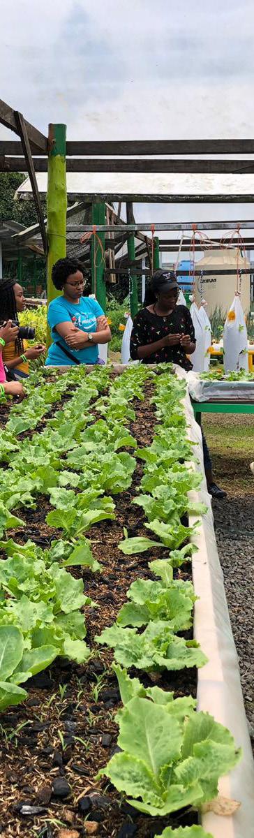 La finca periurbana demuestra una variedad de técnicas agrícolas. Tienen acuaponía, hidroponía, agricultura vertical y reciclaje agrícola.