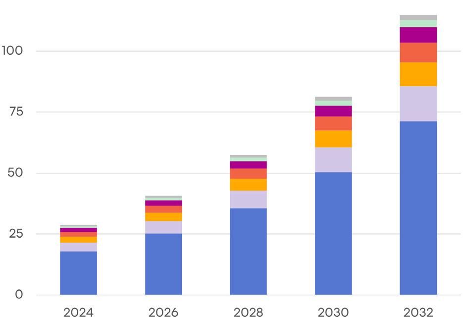 Forecast average of 18.9% annual growth through 2032