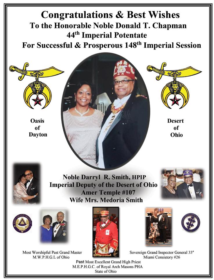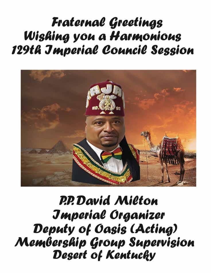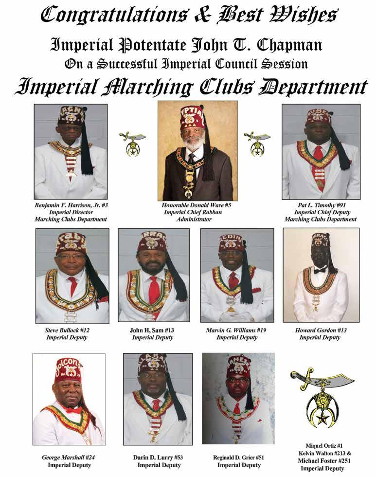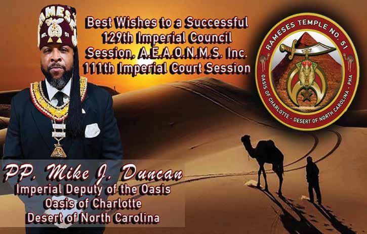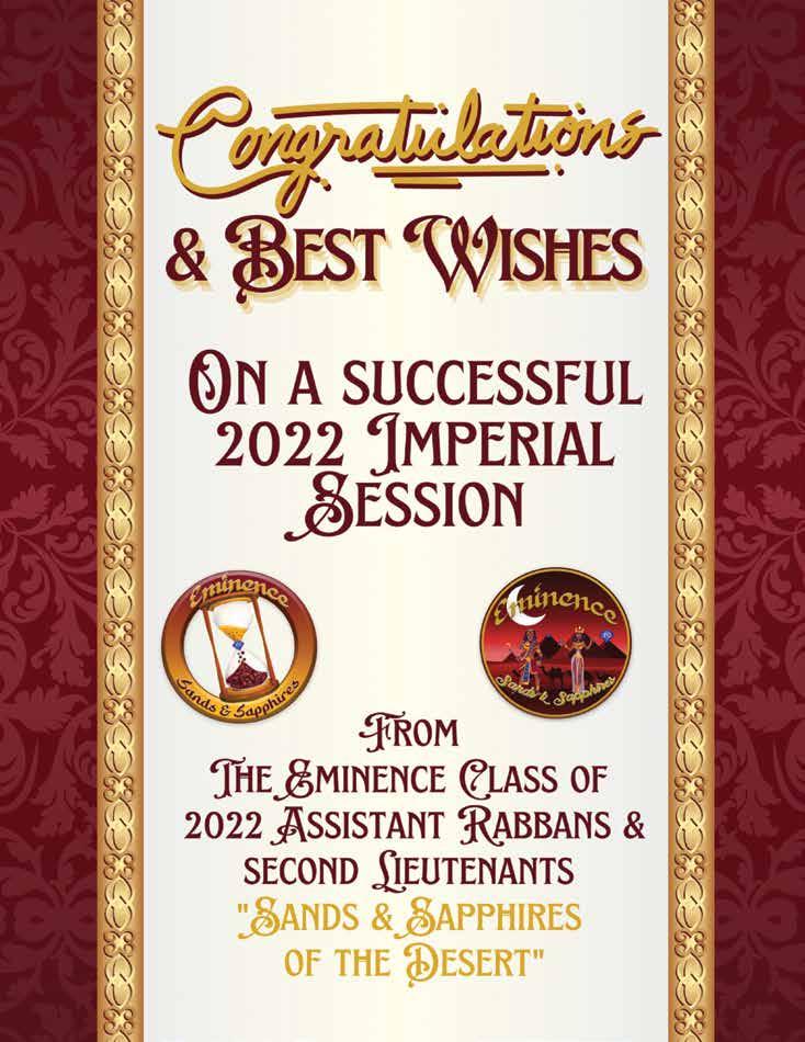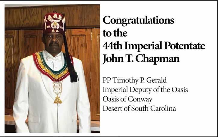 As we close this chapter on my term as your grateful, humble and honored 44th Imperial Potentate, I look forward to seeing and conversing with as many of you as possible in St. Louis. I want us to reflect on the many things we’ve achieved working together, not the least of which is the reinstitution/chartering of 29 Temples, the creation of over 3,000 Nobles and increasing our overall membership to some 18,000. None of this would have been possible without the constant and unflagging support of the Imperial Council and Court, that means ALL of us.