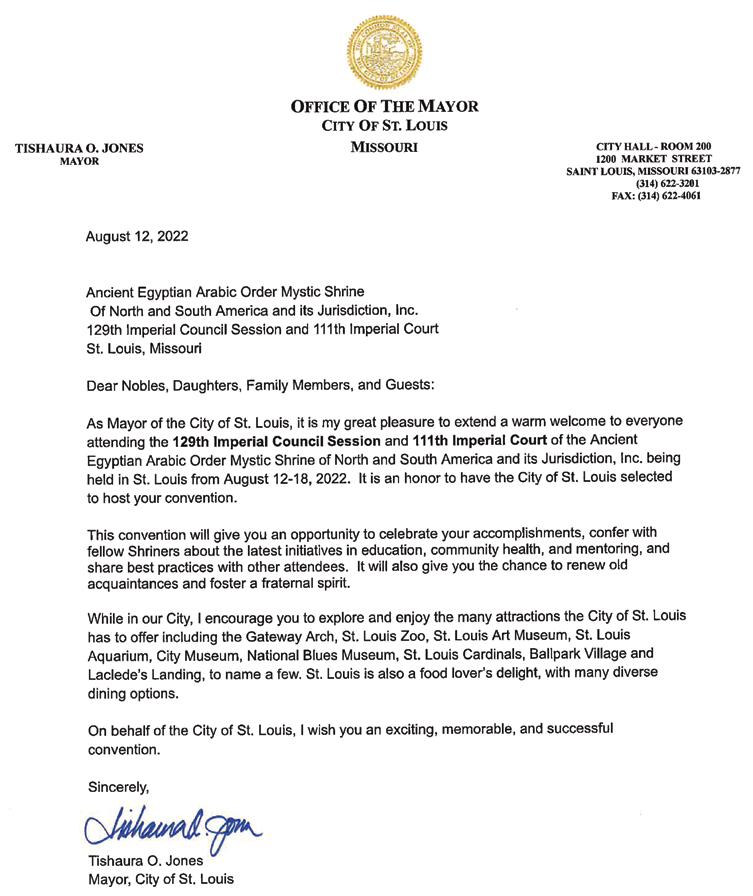 Welcome St. Louis, here we come! As we approach the 129th Imperial Council and 111th Imperial Court Sessions there is a great anticipation for the future. Passing under the Great Arch, gateway to the West, Dts. And Nobles from all over the globe will convene to deliberate, determine and dance the nights away. This great City and its rich history welcome us to the hot bed of the only original American Art Form known as Jazz.