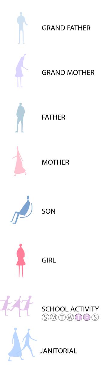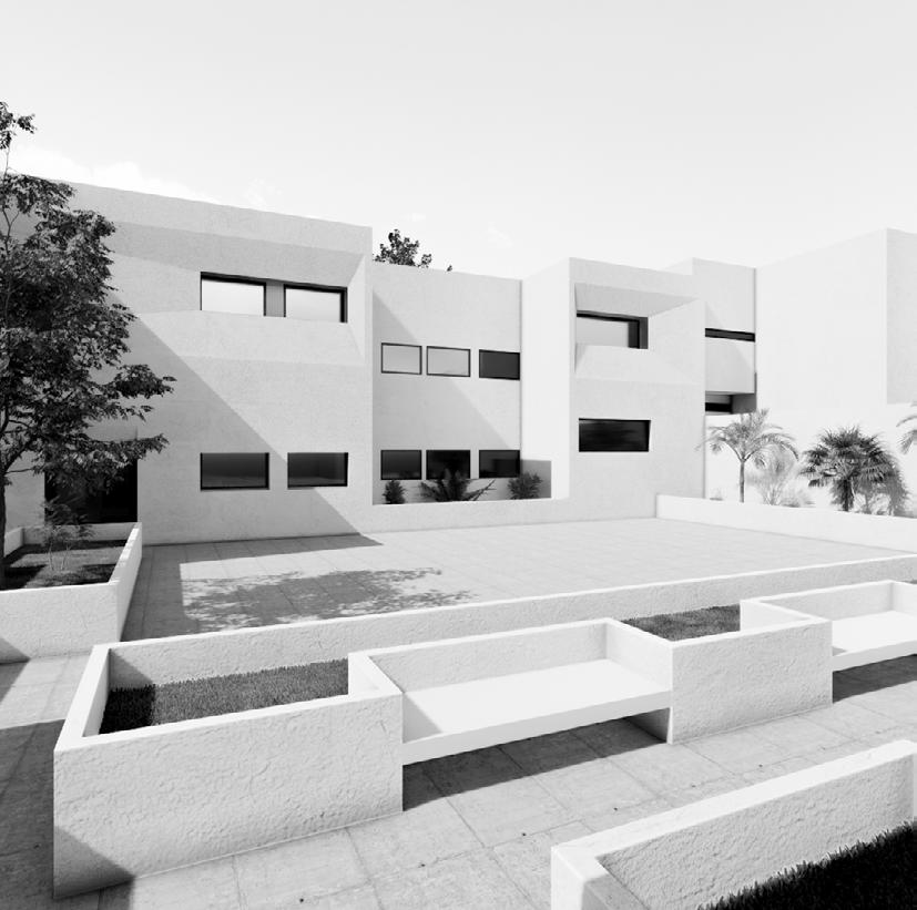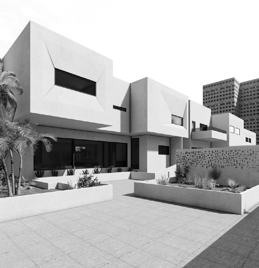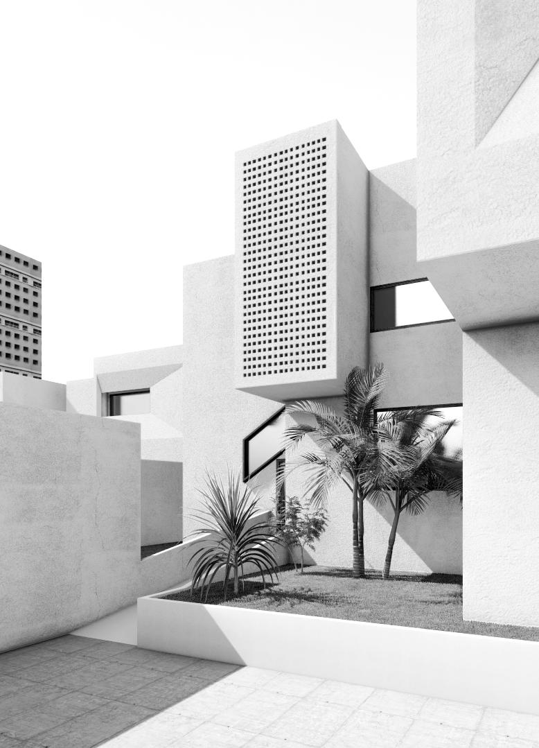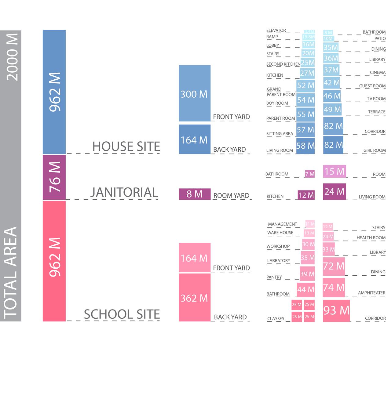 Site placed across the univercity street and beside of a residental spaces. The janitorial placed between villa and school to provide them both services by the man of that family who works in school and his wife who works as maid inside the villa.Both of the places placed in the middle of the side to provide two courtyards,front and back,which provide private and public areas for users,apart from the janitorial,which is located on the northern side of the site and has its own unique courtyard.Both of the main spaces have a parametric facade to create amazing shadows with the sun path.