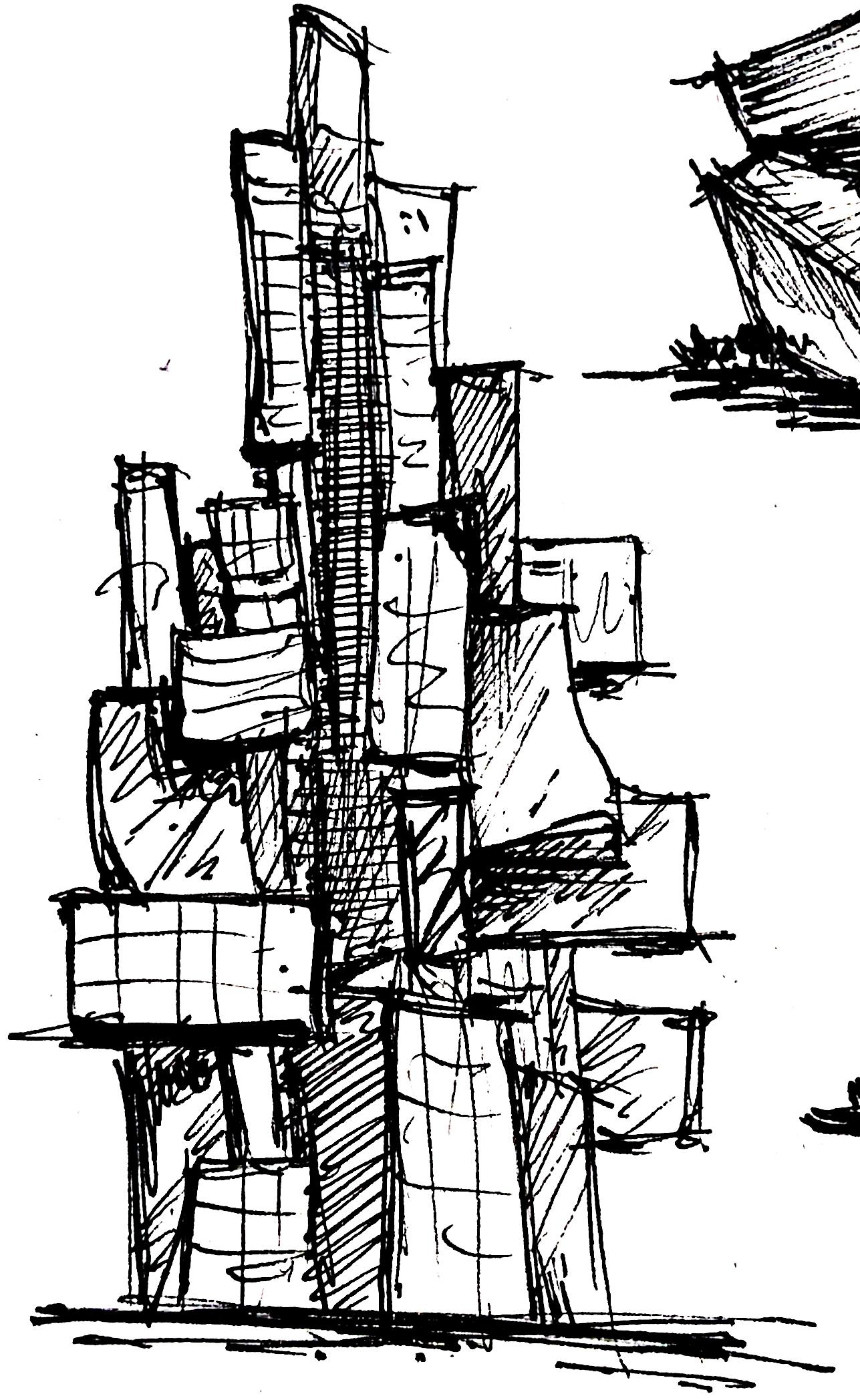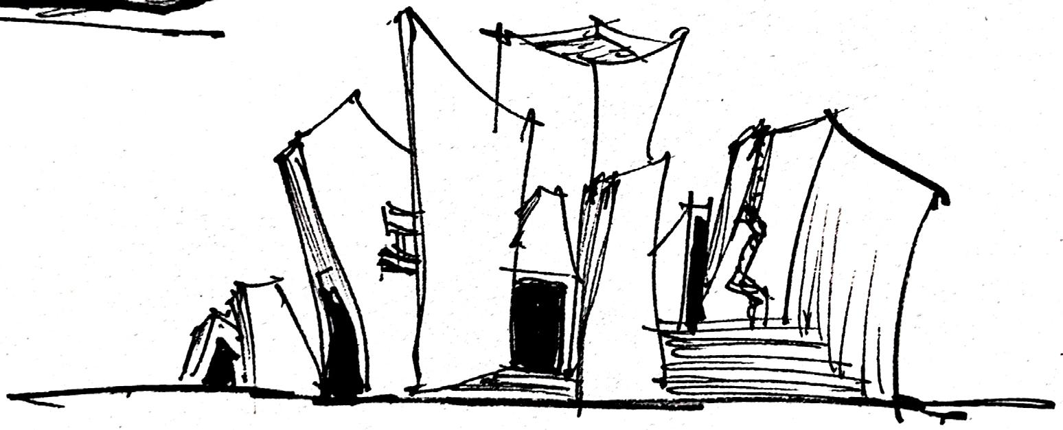 Site of this project is located in south of iran who is covered by hot and humid weather. The idea of the project was making more shadow spots in the site with the buildings and trees to create a space who users feel lotsmore comfortable when experiencing the area,as the project was a large scale placement of the buildings shaped like the concept too and connected to eachother with bridges between them to people in diffrent spots could be able to see each other on the bridges and be able to explore other activities in the site without leaving the buildings.