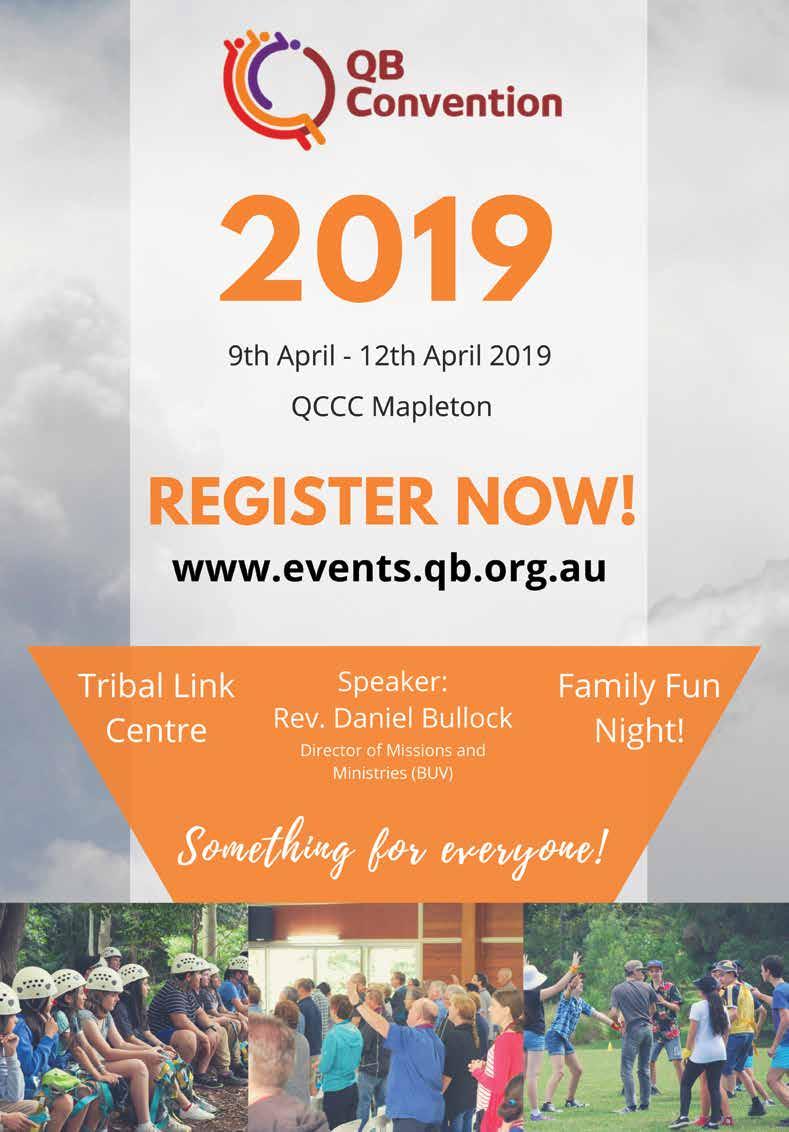 I pray you have a happy and safe year ahead, and that the Lord gives you courage and strength to face any changes you experience in your own lives. Thank you for supporting the QB magazine, and I hope you enjoy this first edition for 2019.