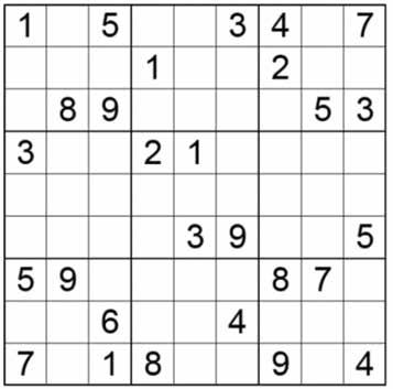 Sudoku rules: Each row, column and block must contain one of the numbers from 1 to 9. No number may appear more than once in any row, column or block. When you’ve filled the entire grid, the puzzle is solved.