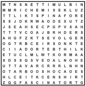Can you find the hidden words? They may be horizontal, vertical, diagonal, forwards or backwards.