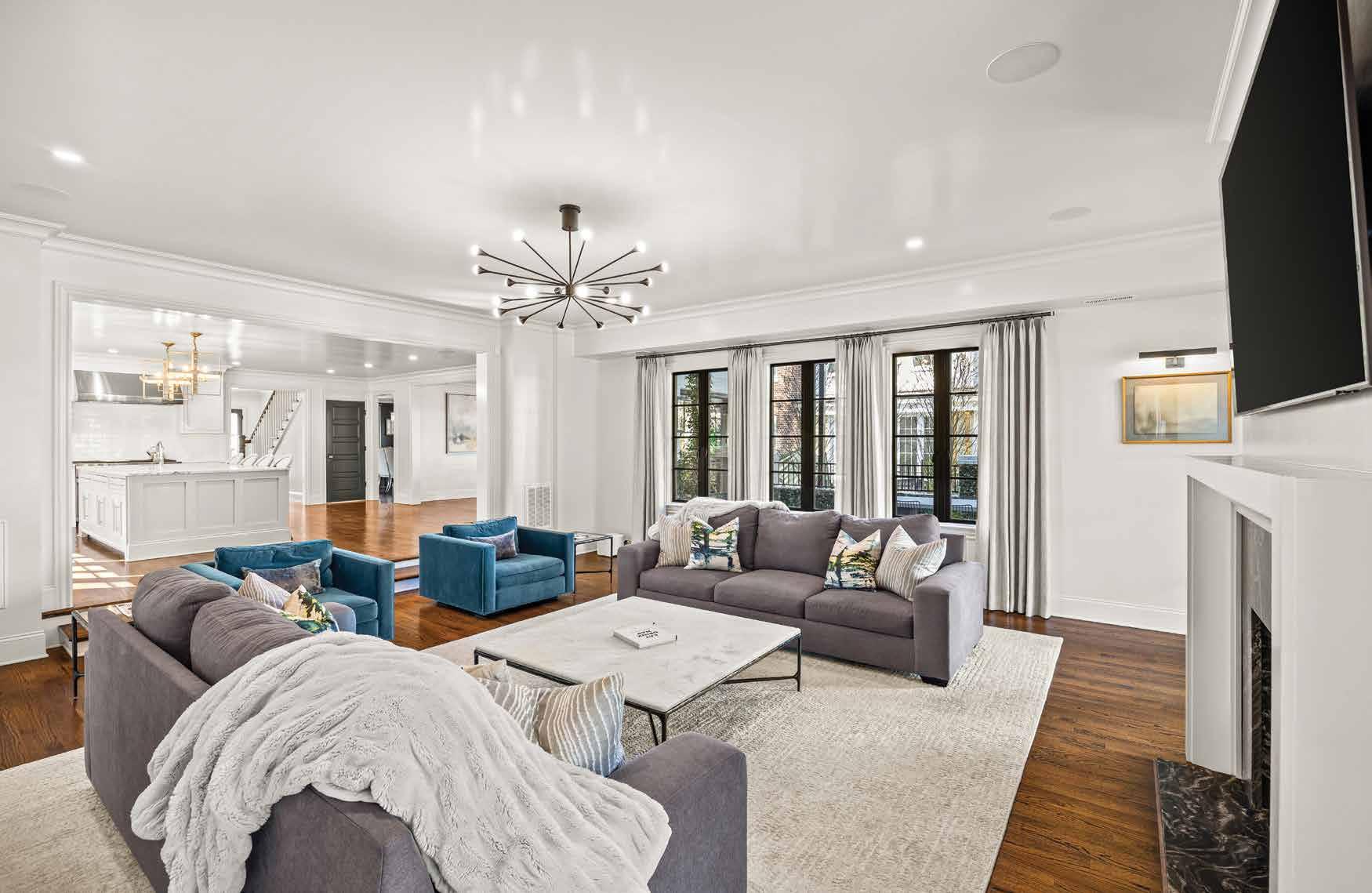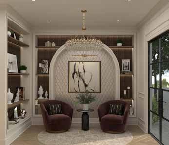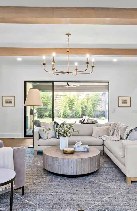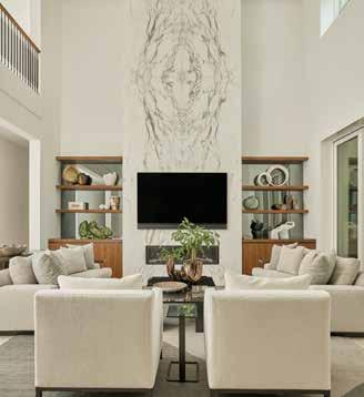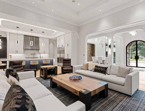 This home is a masterclass in detail, hand-selected finishes and intentional luxury. Architecture, craftsmanship, and elite vendors converge for an elevated living experience. The kitchen pairs Charlotte-based Moravian Cabinets with professionalgrade Sub-Zero/Wolf appliances. Mann Finishing Carpentry brought museum-level trim work and detailing and the custom front door by Palm City Iron Works sets a powerful first impression.