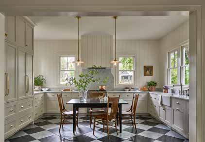 The Briar Farm Cottage kitchen, designed and built by New Old, reflects their approach to creating homes that feel timeless and rooted in tradition. Conceived as the heart of the home, the kitchen evokes the feeling of stepping back in time, centered around an antique farm table reminiscent of gatherings in a grandmother’s eat-in kitchen. Inspired by classic English country kitchens, the space balances nostalgic warmth with modern function. Custom inset cabinetry, honed marble countertops, unlacquered brass hardware, and paneled walls create a layered character that feels both refined and enduring. True to New Old’s philosophy, the kitchen was designed to feel collected over time — a space that is both highly functional and welcoming.