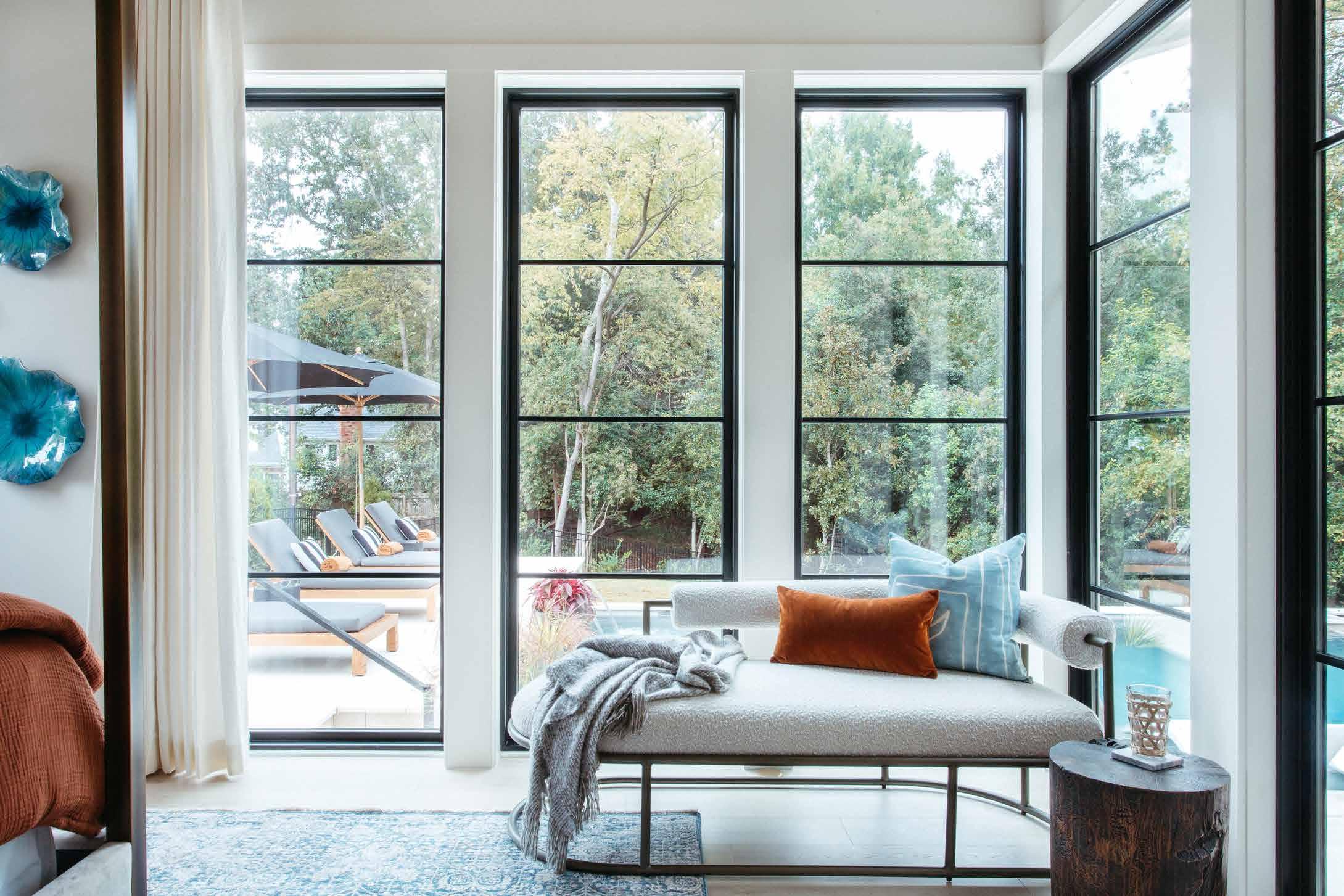 From designer Lisa Sherry comes this ethereal primary bedroom, an intimate retreat right at home. A wall of floor-to-ceiling windows make the room feel even more spacious and welcoming. Part of a fresh, new construction project in a historic neighborhood, the clients came to Lisa Sherry for a beautiful balance of classic and modern.