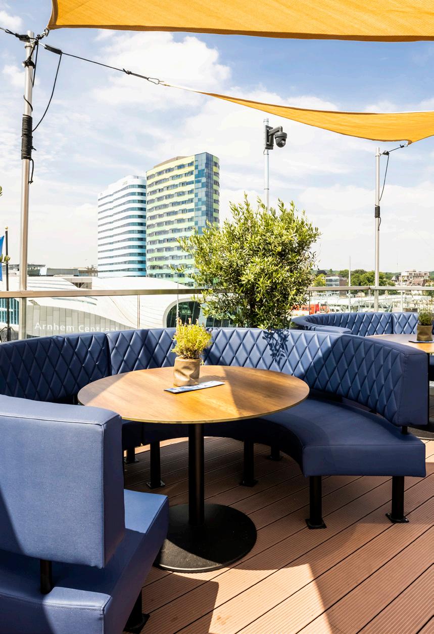 Geniet van een heerlijk drankje & hapje op ons prachtige dakterras en laat je verrassen door het fenomenale uitzicht over de binnenstad van Arnhem. BLOU Rooftop Bar staat voor exclusieve cocktails, gezelligheid en professionaliteit. De champagnes die er geschonken worden, de cocktails die met liefde geserveerd worden en de verschillende rijkelijk gevulde platters garanderen op en top genot. Het Upper deck creeërt een hele nieuwe beleving van borrelen en dineren op het hoogste punt van ons hotel. BLOU Rooftop Bar is gelegen op de 5e etage van Hotel Haarhuis.