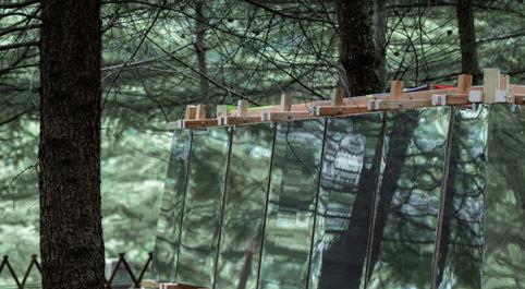 The landscape pavilion adopts a lightweight wooden structure to ensure a sense of fit with the forest environment and minimize interference with nature. The façade uses reflective mirror panels to reflect the surrounding mountain and forest scenery, so that the pavilion is visually integrated with the environment, as if the pavilion itself is engulfed by nature. The top of the building is made of colorful plastic panels, and with the change of light, these colorful light spots wander on the ground and inside the pavilion, giving the space a sense of life, so that visitors can feel the integration of nature and art in the dynamic light and shadow.