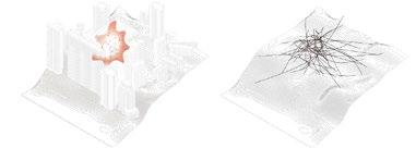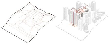 This proposal interprets urbanization as the integration of multiple interrelated and collectively operating layers of circulation, activities, behaviors, and information flows. These variables evolve and optimize into path structures embedded in existing systems as a way to organize and optimize cities, based on algorithms inspired by natural patterns. The generation and segmentation of space produce novel program combinations at different scales, creating cohesive service clusters that transition from point-to-point connectivity to serving multiple needs and purposes. Consequently, what was once a two-dimensional system of vertical and horizontal intersections transforms into a genuinely three-dimensional spatial coupling state, addressing the discontinuities within mountainous urban regions and the issues of programmatic and physical isolation. This new selforganizing strategy plays a role in control and mediation, resulting in a hierarchically diverse spatial state.