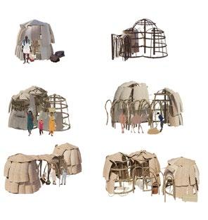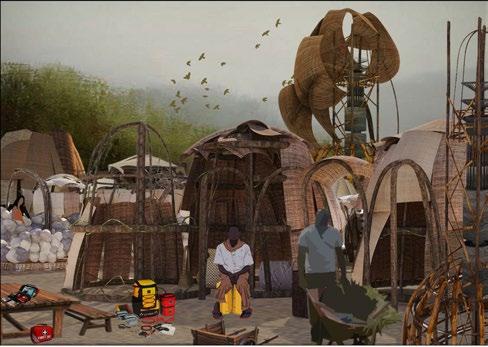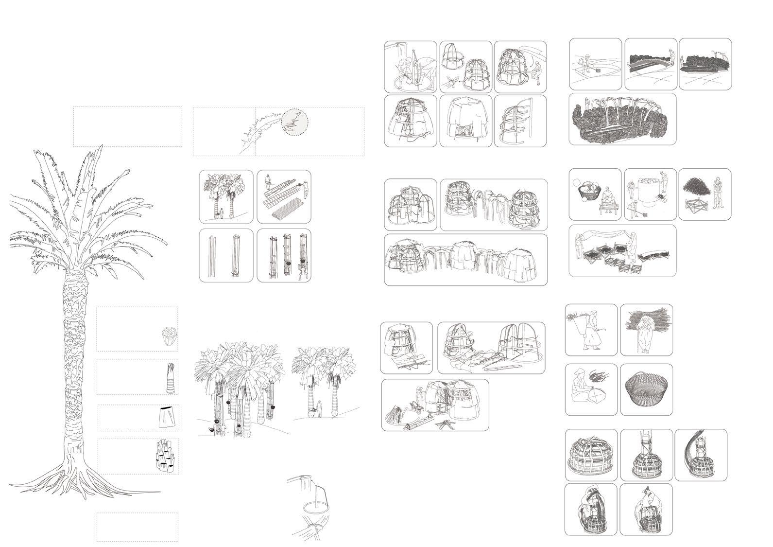 Post-battlefield refugee projects, based on the perspective of a field doctor's diary, document and gradually unveil the deliberative process surrounding post-battlefield refugees. This process includes discussions on migration paths, the gathering of resources for coexistence and regeneration with nature, and the continuous reversal of the status quo to achieve self-sufficiency as a crucial agenda. Decisively, by simulating the transfer period and discovering renewable parts within abandoned palm groves as new resource mediators transformed into building materials and manufacturing tools, a solution is achieved for modular units, components, and energy parts that are assembleable, disassemblable, and regenerative along the migration route. A novel architectural form emerges, integrating patterns of temporary residence, mobile healthcare, and agricultural planting systems. Throughout this process, renewable energy harvested through biotechnology and organic fuels serve as alternative sustainable resources, enabling control over resources and self-harvesting.