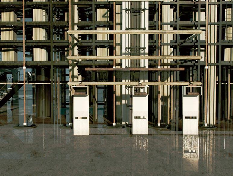 Visitors, whether tourists or buyers, can utilize the building's tracking data for remote communication regarding the environment and goods. The building, utilizing the latest technological media such as capsule containers, X-ray detection, nitrogen preservation, and intelligent cold chains, establishes a service process, an industrial chain, and creates intricate machine structures.
