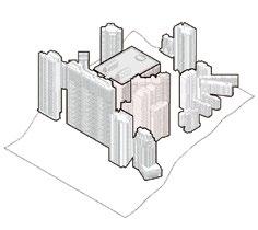 The Five Points Community project seeks to create new connections betweenbuildinas on the old site, demolishing and improving five buildings to formdifferent functional areas. We create a new grid to bind the sites together. The Five Points neighborhood was designed to attract young people, and wetransformed the public space into a large playground and set up the booth areausing the depression of the terrain to quide the route. The use of amusementfacilities connects the public area in the middle with the open space of the river.