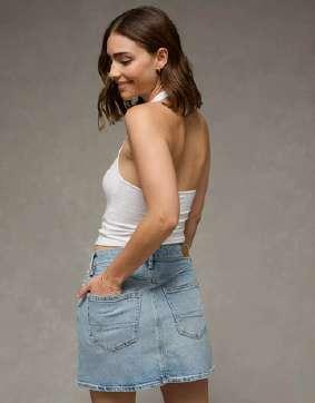 Mini falda clara (denim) para contraste clean Como alternativa shorts de mezclilla + overshirt abierta para vibe vacation-core. Con un calzado sneakers retro o sandalias