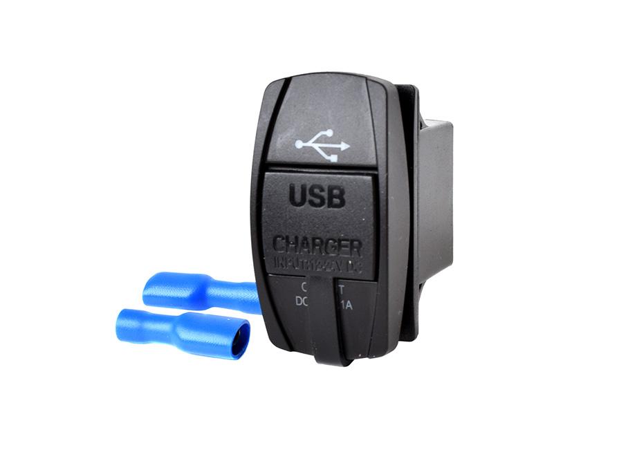 The Rocker Switch Blank USB Charger double port is a compact automotive accessory featuring a blank rocker switch design that blends seamlessly into the vehicle’s interior. It offers two USB ports for fast charging of electronic devices, providing convenience and functionality while maintaining a clean and modern appearance.