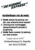 ons kunt u bij elk hoofdgerecht kiezen uit tahoe (vegetarisch), kipfilet, varkenshaas, runder diamanthaas of gamba’s. Gegarandeerd genieten! Prinses Julianastraat 30, Wemeldinge Tel. 0113 - 626 454 - www.thongthairestaurant.nl elke maandag en dinsdag gesloten VOOR EEN PLEKJE IN HET RESTAURANT OF EEN BESTELLING VOOR AFHAAL GRAAG EVEN VAN TE VOREN BELLEN! Zeebaarsfilet 4 HALEN 3 BETALEN Visbami huisgemaakt, 500 gram 7.95 Noordzeesalade 150 gram 3.30 Roodbaars-ovenschotel huisgemaakt, 2 stuks 15.50 Weekaanbiedingen 01-11 t/m 05-11-2022 Korringaweg 33 - Yerseke - tel. 0113- 57 09 30 Tot ziens bij Vishandel Van As Zeeland BV Genieten van verse vis, haring vers van het mes, gebakken vis, Zeeuwse mosselen, kant en klaar maaltijden, div. soorten schepsalades Sluisweg 4‧4416 NH Kruiningen www.fruitschuurkruiningen.nl‧T. 06 - 391 452 83 Openingstijden:ma.-vr.8:00-12:00/13:00-17:30‧za.8.00-15.30 uur Aanbiedingen geldig van woensdag t/m zaterdag Bospeen per bos 1,25 Prei 500 gram 0,59 Pers sinaasappels 15 stuks 2,49 Zeeuwse Jonagold 2,5 kg 1,99 U kunt bij ons terecht voor leuke (Zeeuwse streek) kerstpakketten en relatiegeschenken Voor meer info kunt u een kijkje op onze website nemen
